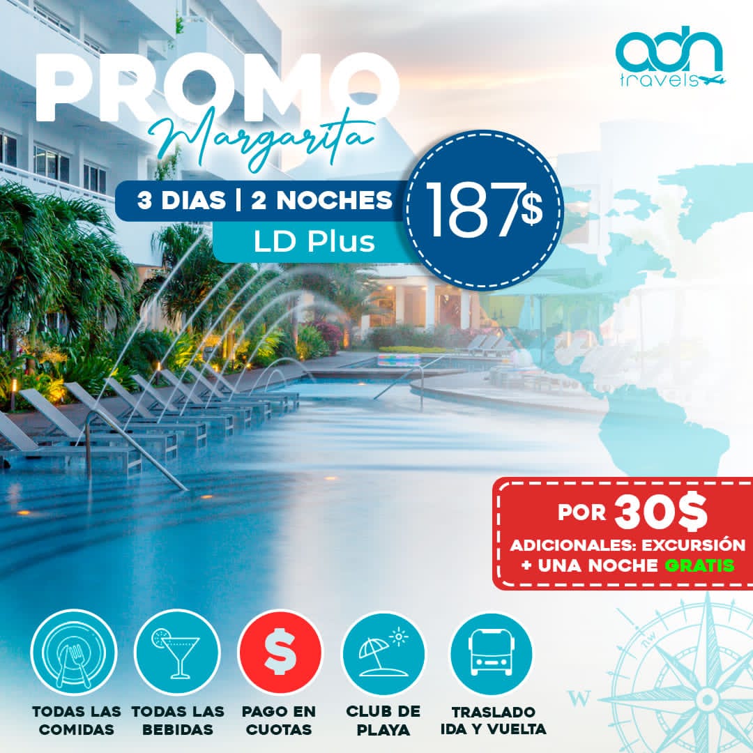 La promo/paquete “LD Plus” incluye ⏬: 🚗TRASLADO AEROPUERTO – HOTEL / HOTEL- AEROPUERTO EN UNIDADES VIP 🏨HOTEL: 🍽Todas las comidas: desayunos, almuerzos, snack, cenas. 🍻Todas las bebidas alcohólicas y no alcohólicas Nacionales. 🏖Club de playa y piscina 🏋️♂️🏋️♀️ Sala de Ejercicios✅Hermosas instalaciones con múltiples atractivos, WiFi y mucho más 🥳💵Todo por 187$ por adulto ( el paquete completo 🤯).💰Disfruta de nuestro pago en cuotas. Promo válida para su disfrute hasta el 30/11. Si deseas viajar en otra fecha puede hablar directamente con un asesor vía WhatsApp.✈️Consulta por los boletos aéreos. Contamos con los mejores precios en boletería.
